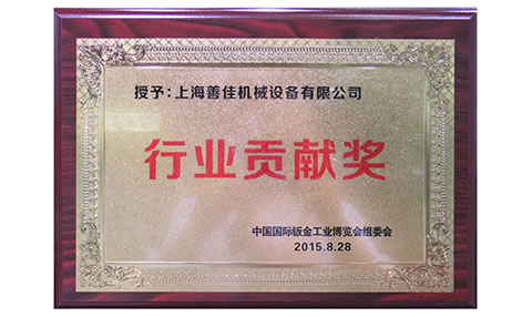 2015年8月28日CISIE2015中国国际钣金工业博览会在广州隆重举行,会上,上海善佳被中国国际钣金工业博览会组委会授予“行业贡献奖”;